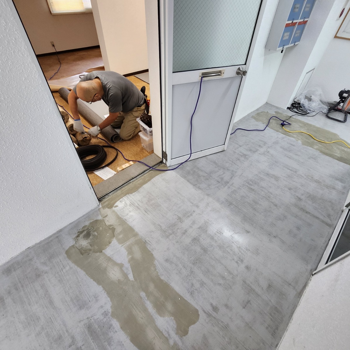 工事前に床材を貼ることで扉開閉に干渉しないか、しっかり確認させていただいてます。