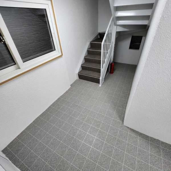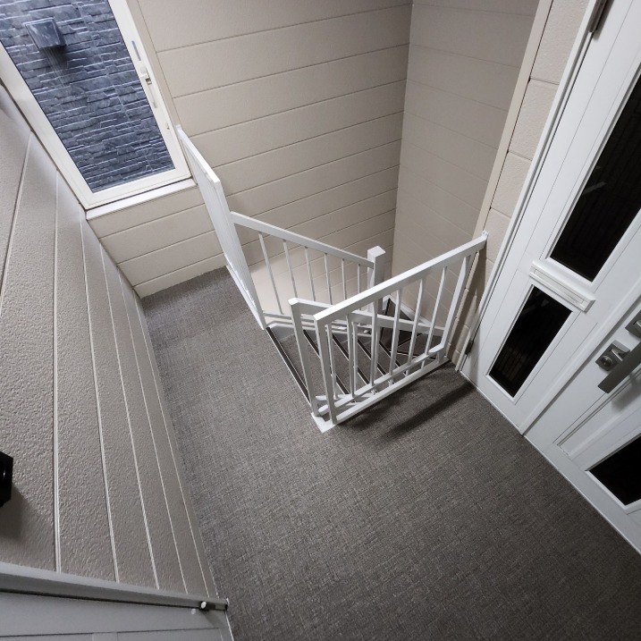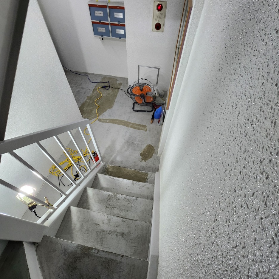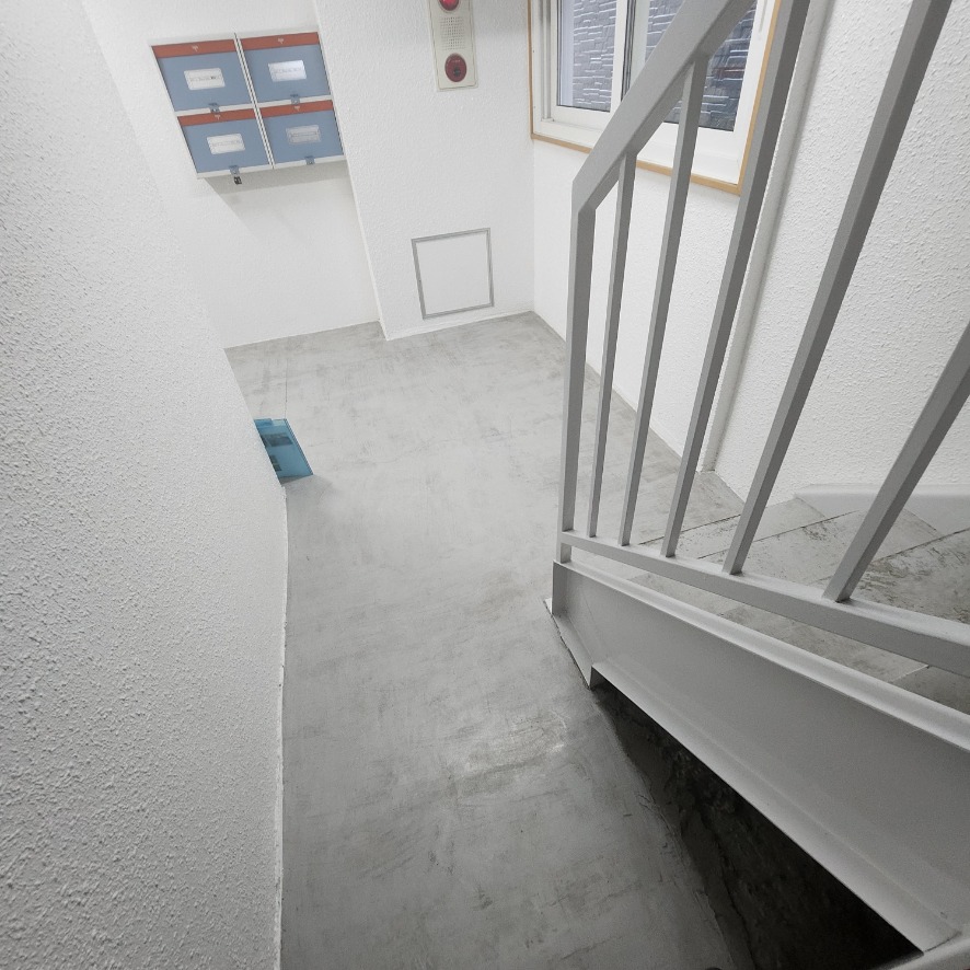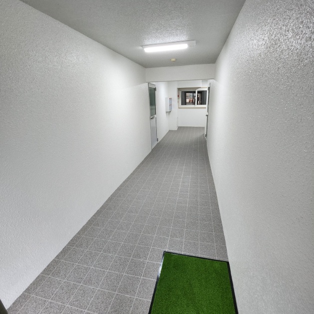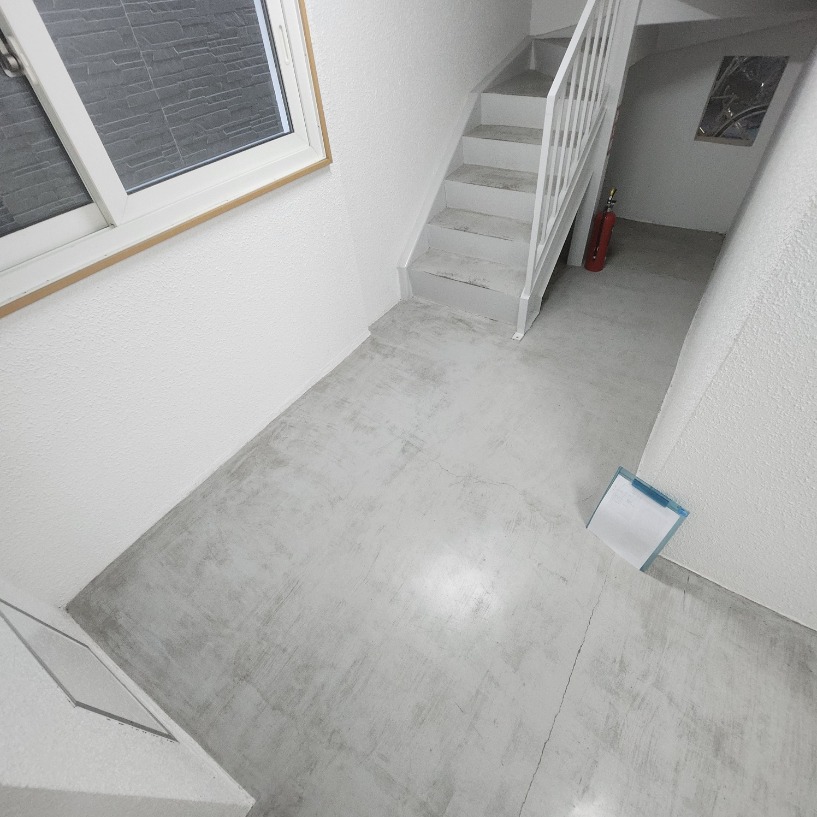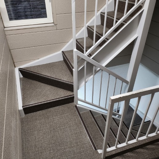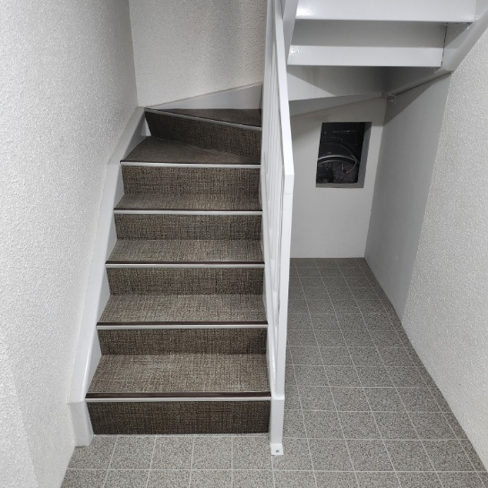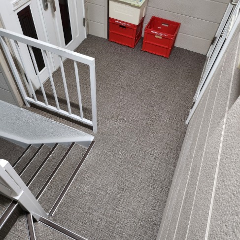 アパート共用廊下床(階段含む)に長尺シートを貼らせていただきました。