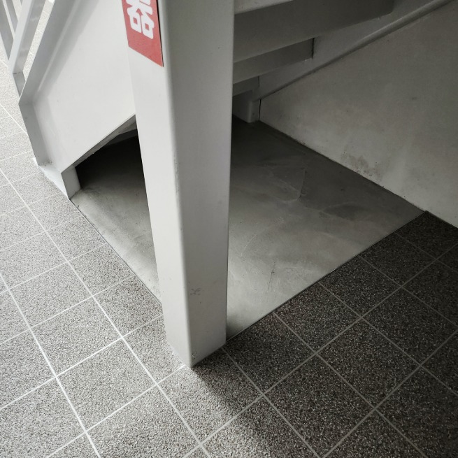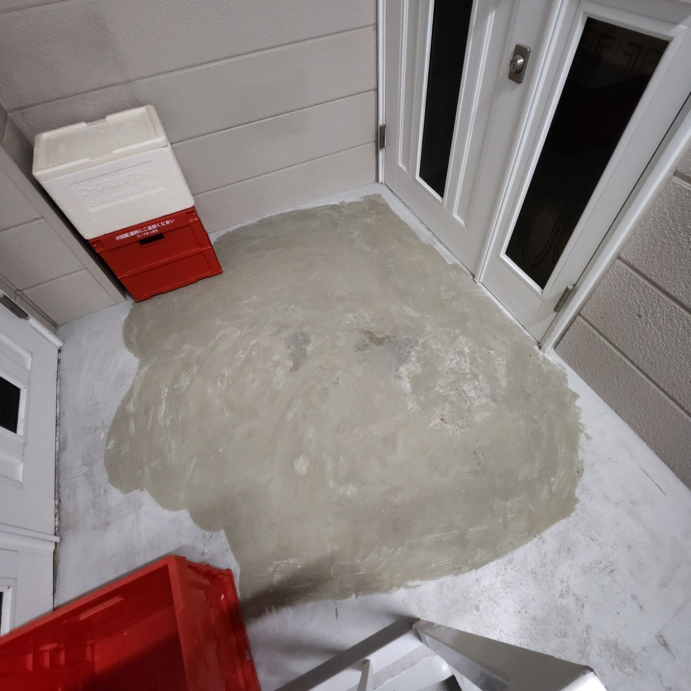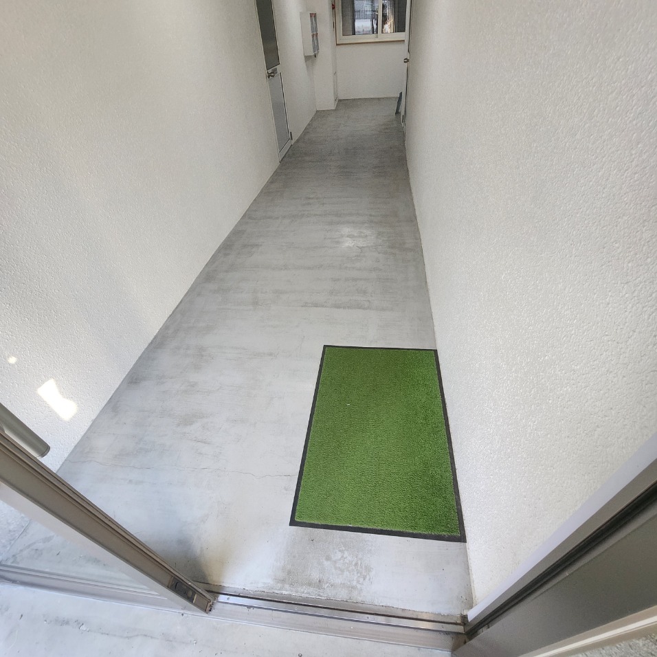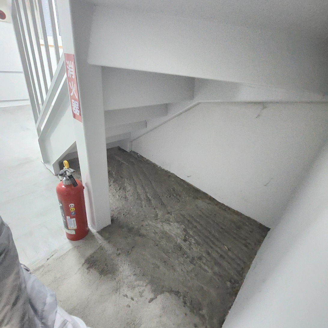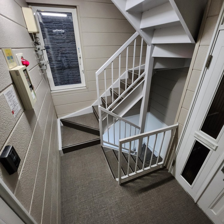 アパート共用廊下床(階段含む)に長尺シートを貼らせていただきました。